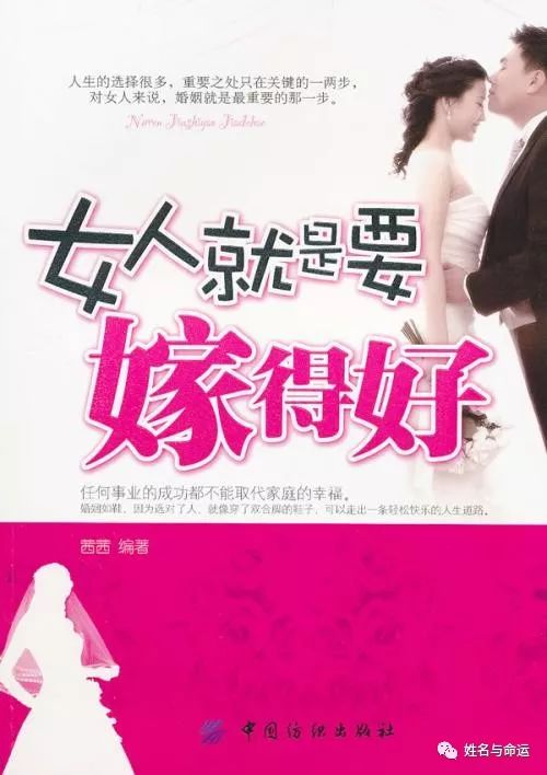 对于女人而言,生得好不如嫁得好,学习好也不如嫁得好。什么叫嫁得好?不是说非得嫁给有权有钱的人,才叫嫁得好。找我算命、合婚的客户中,有不少官太太、富太太的婚姻,在光鲜的外表下,凄凉、空虚的不如一般人。命理学上的“嫁得好”,是嫁给了一个和自己八字互旺的男人。