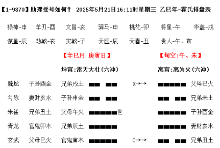 今天分享一个2025年5月21日的实战卦例,卦主说有个案子明天要摇号选择鉴定机构,问是自己去好,还是助理去好,所谓好,就是谁去摇号,能摇到对自己有利的号,选择到自己推荐的鉴定机构。卦主跟助理分别摇了一卦,第一卦是卦主自己摇的,问的是自己去如何,第二卦是助理摇的,助理问自己去如何。