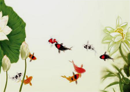 挑选九鱼图时要选择九条鱼要朝同一个方向游,代表家人齐心、团结和睦。画框的颜色也要配合家人的五行,五行属金可用金色或者银色,属木可用绿色,属火用红色或者紫色,属水则用蓝色或者灰色。