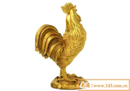 风水铜鸡寓意着吉祥、招财,请回家的铜公鸡会助主人财源滚滚,五谷丰登。在风水学中,鸡不仅有着招财纳福的作用,还有化煞驱邪斩桃花的作用。