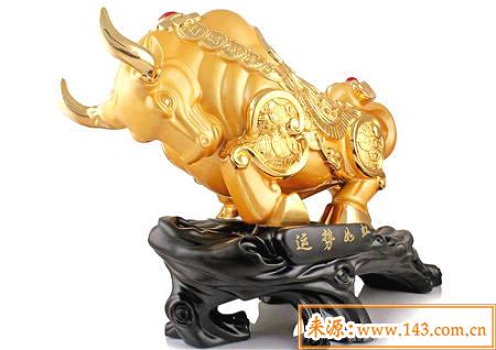 在风水学中,通常来说,制作牛的风水摆件的材料以黄金较佳,其次为铜制。适宜浑身散发出金色光芒的金牛较好,这样对于运势有着很好的提升。
