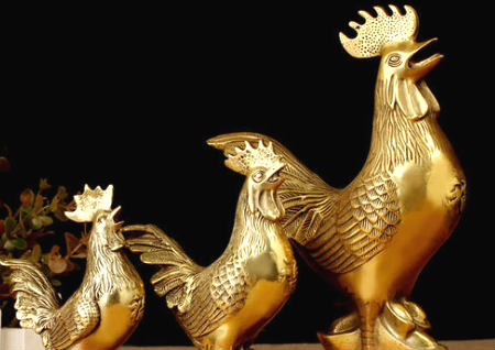 9、摆放一对风水铜鸡增桃花