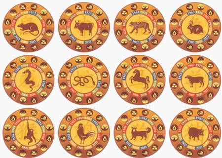 年命生肖的干支组合是六十年一轮换,因此我们只需要知道某个60年甲子的顺序组合,就能知道其相应的五行属性。