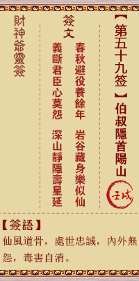 财神灵签第59签解签 财神灵签第五十九签