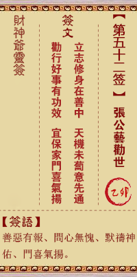 财神灵签第52签解签 财神灵签第五十二签