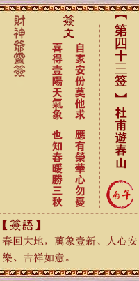 财神灵签第43签解签 财神灵签第四十三签