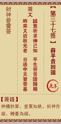 财神灵签第37签解签 财神灵签第三十七签