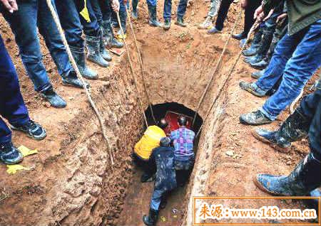 不论棺材是好是坏,一旦将棺材移开后,在原棺材底部挖一尺五寸深的血土并将其全部移到新的井底下,然后放新的棺材。