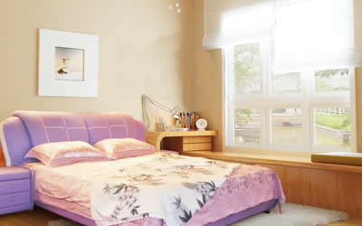 2、床位的摆放要保证卧者可以在床上瞥见卧室的门与窗,若是在黎明时分,有光照射到床上就更好了,会辅助人体吸收大自然的能量。