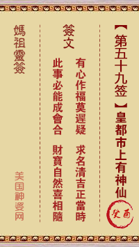 妈祖灵签第五十九签:癸酉●●● ●●○属金利秋宜西方