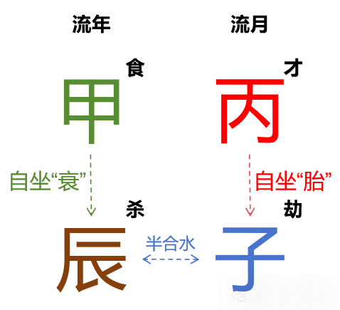 子辰半三合水,子水将辰土的能量向水引化,然后生甲木,然后生丙火。子水是一切的推动者,有点履行自己退场前最后义务的意思。今年退场后,下次明现水要等到2031辛亥年了。对于壬水来说,子水是劫财,多与人际、合作、竞争、破财有关。身强壬水:
