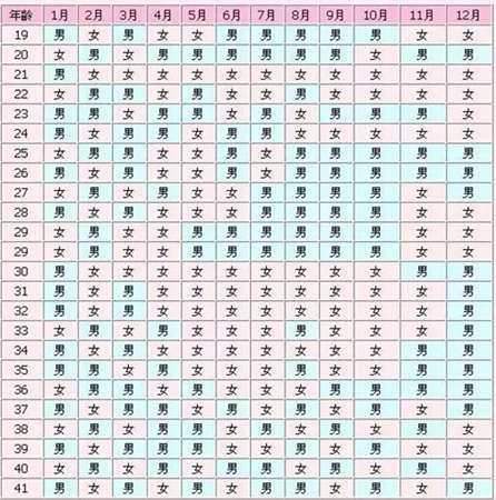 19岁、20岁、22岁、25岁、26岁、27岁、28岁、29岁、33岁、35岁、37岁、39岁、41岁