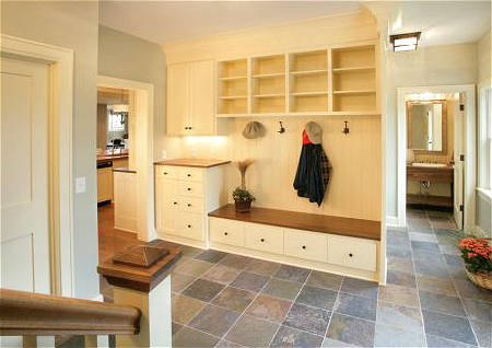 风水学上认为入户门的右手边为鞋柜较恰当的摆放位置,在“左青龙右白虎”的说法中,视青龙为祥瑞之兽,白虎为不吉之兽,所以将鞋柜位于门口右方,正好可以压制白虎的凶煞。