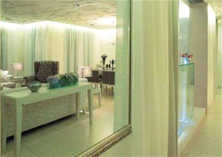 如果镜子正对门,但是却由于格局问题无法移动,那么我们可以在镜子上面做些文章,磨砂,加艺术字,加山水画,在镜子前加上饰品等等。