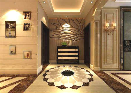 在灯槽中和天花板上宜安装日光灯,这种灯具光效好耗电低,曾广泛使用。玄关宜遵循以暖色调为主,冷色调为辅的原则。