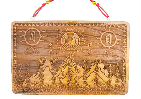 如果住宅犯凶虎压青龙的风水格局,可以在犯此方位挂一副山海镇,左右挂两串五帝钱,山海镇的正中央画八卦太极图,四周是五湖四海,中间画三山五岳,南北各安日与月。在风水学中,山海镇具有移山排海,颠倒阴阳之功效。能够将煞气完全排除。功效非常强大。