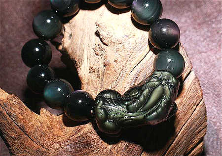 黑曜石被誉为“黑金刚武士”,可辟邪转运,吸纳一切负性能量。黑曜石自古以来就是制造佛珠、佛像、护身符等风水摆件的首选。