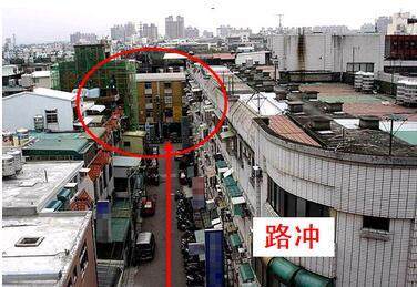 3、侧冲:道路从屋旁冲射。其凶兆除易腹部开刀外,其余与後冲相近。
